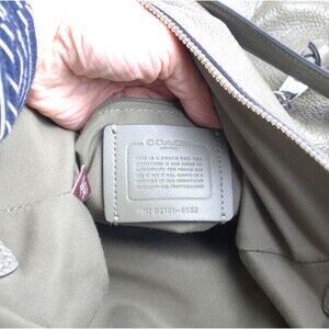 The Coach Pennie Shoulder Bag No. 6152 in Sage Green Pebbled Leather is a rare and stylish accessory for women. This large rectangular bag features a zip closure, a shoulder strap handle in sage green leather, and silver hardware. The interior is lined with sage green fabric and includes inner and outer pockets for organization. The bag also comes with a detachable strap and a bag charm, making it versatile for everyday use or special occasions. This designer piece from Coach's Penny line is perfect for those who appreciate quality craftsmanship and timeless style.