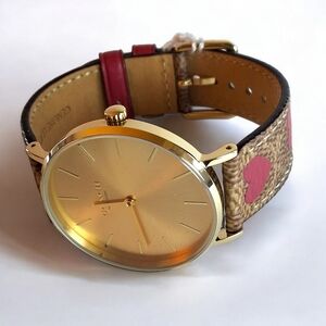 NWT Coach Perry Brown Signature Canvas & Red Heart Watch (14503886) | $175 Retail | Matching Bag & Wallet Listed!
