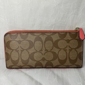 Coach Peyton Brown and Coral Signature Wallet