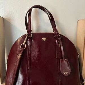 This Coach Peyton Leather Cora Domed Satchel in patient leather is the perfect carry all bag for fall and winter. It’s new without tags. Literally no flaws. It’s absolutely stunning!
