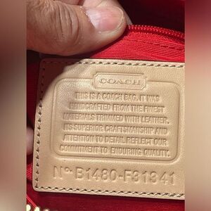 New com tag MSRP $389 + tax / No. 1480-F31341 Coach Peyton Floral Cora Vaulted Shoulder wallet bag * Coated canvas with red and pink floral print. * The inside-coated canvas is durable and easily cleaned * Khaki leather trim and details * Gold-toned hardware *Zipper closure *Large red leather hang tag with signature *Large travel tag with red leather logo * Front medallion logo * Back exterior pocket * Double leather handles with 5 1/4" drop * Red canvas inner lining * Interior: 2 slip and 1 zipper pockets with Creed * Spacious: approximately 12.5" wide x 9" tall x 5.5" deep * 100% Authentic