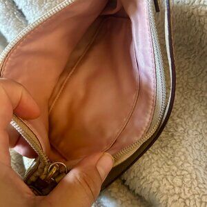 Coach Peyton Metallic wristlet, cute neutral color olive green and taupe. Excellent condition barely used come with original hang tag.