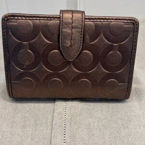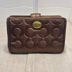 Coach Peyton Op Art Debossed Leather Medium Wallet - Bronze