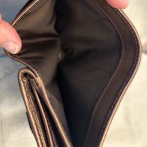 There is a scratch in the leather on the inside of the seven credit card slot of wallet. Please see photos for more details.