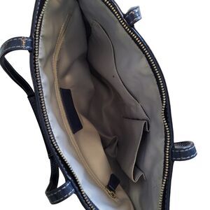 Interior zip pocket with leather zipper pull & Creed on top + 2 slip pockets