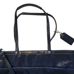 Keywords: Coach, tote, glossy, patent, stitched, F19198, signature, blue, Signature Series, Gallery