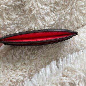 Style tags: Coach card case, Peyton signature, khaki persimmon, gently used, red lining, compact wallet, designer accessories, stylish cardholder, small leather goods, luxury essentials