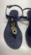 Coach Phila Jelly Flat Thong Sandal Shoes Turn Lock Brass Navy Blue