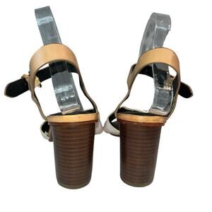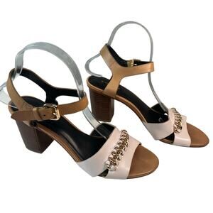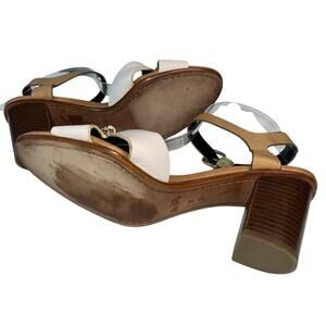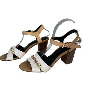 Coach Phoebe White and Tan Leather Heeled Sandal 8.5.