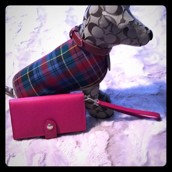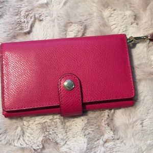 New Coach Pink Wallet Wristlet fits my IPhone 7 with case ✨ 6” L 4” W has 5 CC slots one full-size ID or debit slot and a full slot on back both sides hold money or phone! Smoke free Home!