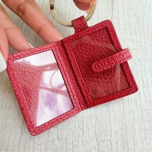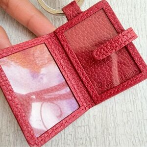 Vintage Coach Photo Picture Key Chain. Red pebbled leather with a silver tone key ring. Some surface scratches and tarnish on the key ring but still in great condition. Smoke free.