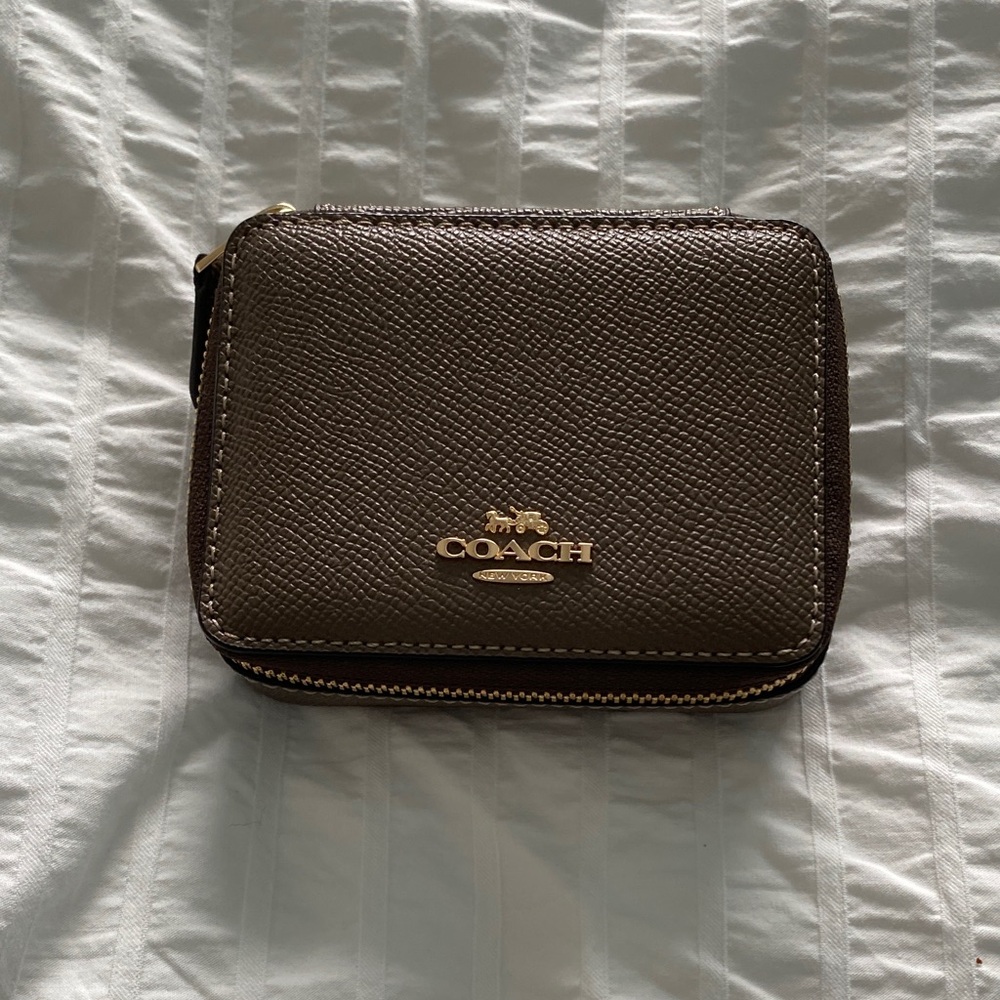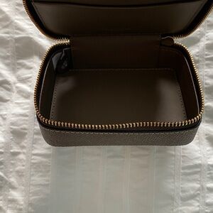 Light brown leather pill container with removable plastic insert, can be used as a case for other things like jewelry!