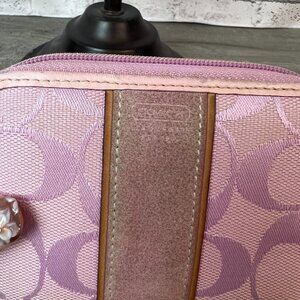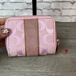 Coach Pink & Beige Signature C Canvas & Patent Leather Bi Fold Wallet