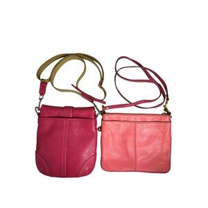 Coach Pink Crossbody Bags Two Piece Lot Leather SOHO Flap Buckle & Multi Zip