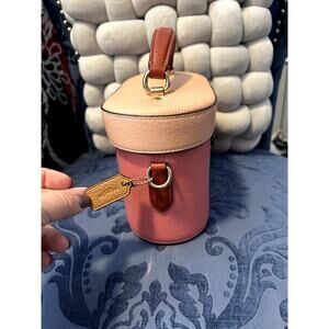 This Coach mini bag is pastel perfection. Pebbled leather in peach and pink, gold hardware that glows, and a top handle that says “I’m classy but I bite.” Turn-lock closure keeps it tight, keychain tag adds flair. It’s giving soft luxe, tiny but mighty, and totally collectible.