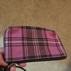 Chic pink plaid design. Features a sleek wrist strap. Ideal for on-the-go style.GUC with minimal signs of normal wear. From a smoke-free but cat friendly home.