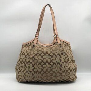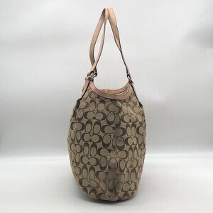 Coach Pink Signature Canvas Stripe Devin Shoulder Bag