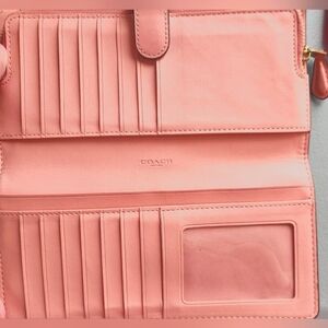 Elegant and stylish, this Coach wallet in pink taffy is perfect for organizing your essentials. Crafted with attention to detail, it adds a touch of sophistication to any outfit.