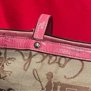 Stylish Coach tote bag featuring a chic pink and brown design. Perfect for everyday use with a spacious interior. Preloved with callouts pictured