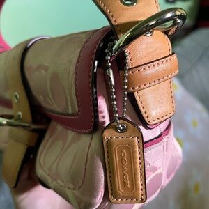 Coach Pink and Tan Shoulder Bag Set optic pink soho flap vintage