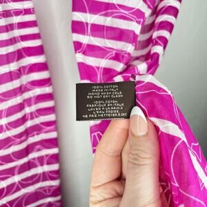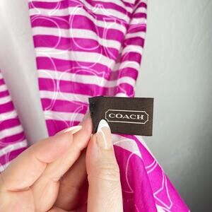 Coach Pink and White Striped Signature Logo C Cotton Raw Cut Lightweight Scarf