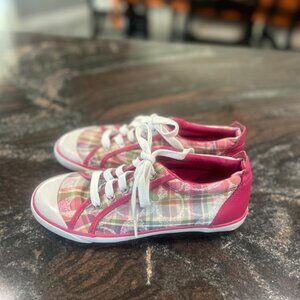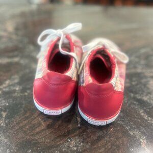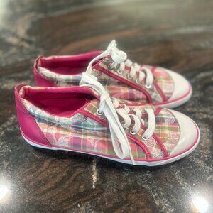 Coach Pink and multi plaid lace up canvas sneakers. Size 8. Gently worn.