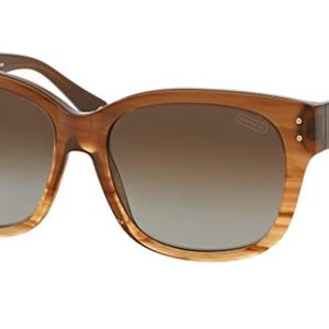 Lovely pair of polarized Coach sunglasses, brown gradient with brown horn frames. Few tiny scratches on lenses, but will not affect vision. Comes with case and authentication. Thanks for looking!