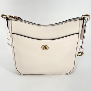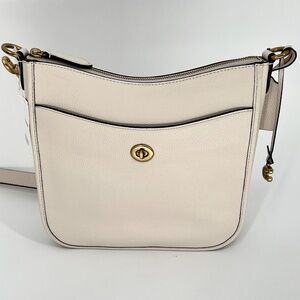 Coach Polished Pebble Leather Chaise Crossbody Bag Off White Dust Bag