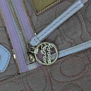 Coach Poppy 2010 Raffia Tote. Tan, Cream And Pink With Lavender Lining