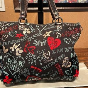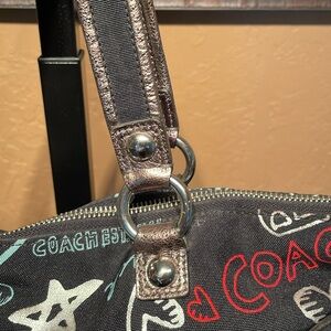 Coach Poppy Black Canvas & Bronze Metallic Leather Shoulder Bag Like New!
