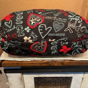 No Call outs! Super fun print, large front zipper pocket, silver hardware, zip top closure. Red interior with both zip & slip pockets. 11x17 Comes with dust bag.