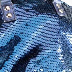Coach Poppy Blue Sequin Spotlight Purse w/ Disco Ball Bag Charm XL