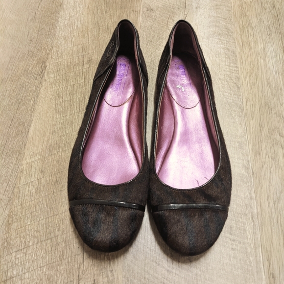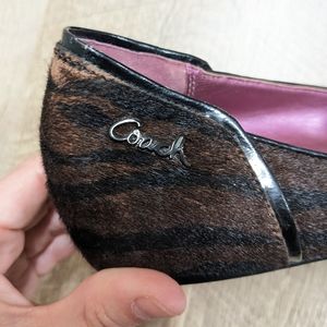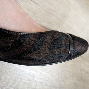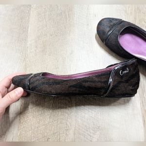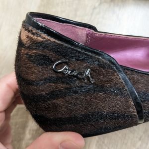 Coach Poppy Calf Fur Ballet Flats Brown and black Zebra Print