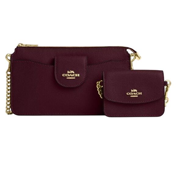 Chain strap with 22" drop for shoulder or crossbody wear (17" drop with card case detached)