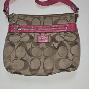 Coach Poppy Daisy Signature C Swingpack Crossbody Bag Khaki Raspberry Y2K Worn