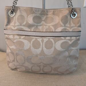Coach Poppy G1282-21161 Metallic Tote Tan/Beige With Chain Strap Good Condition