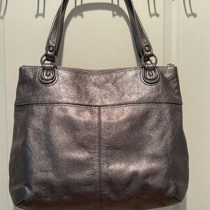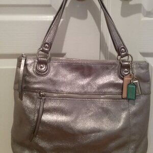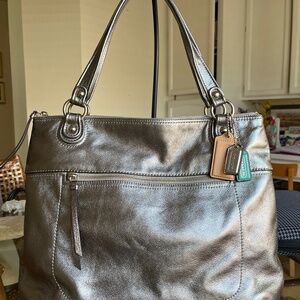 Satin, light turquoise interior with 2 open pockets and 1 zipper pocket
