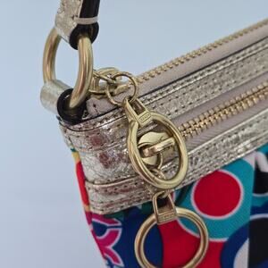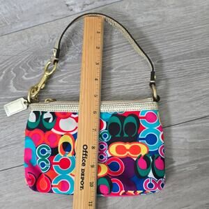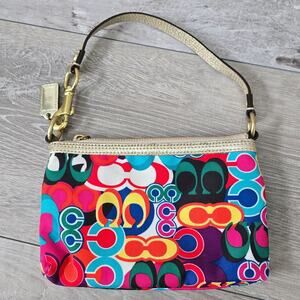 Coach Poppy Glam Op Art Colorful Wristlet Purse Clutch Metallic Gold