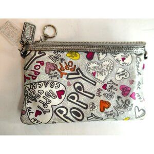Coach Poppy Graffiti Gray Silver Wristlet Purse, Hearts, Y2K, Zip Close, READ