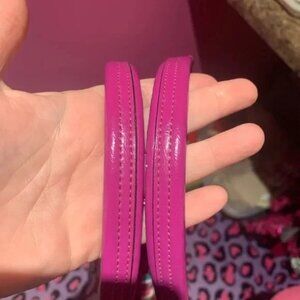 The Coach Poppy Graffiti XL Weekender/Travel Bag is a large rectangular duffle bag with a distinctive purple multi-color graffiti pattern. It features a zip closure, double purple leather handles, and a detachable strap for convenience. The bag is made of nylon and leather with gold hardware, and has a pink canvas lining. Perfect for travel, this stylish Coach Weekender bag combines practicality with a touch of designer flair.
