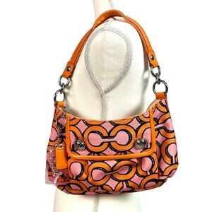 Coach Poppy Groovy Shoulder Bag Pink Orange Signature Pop Art Canvas Keychains Silver Tone Hardware