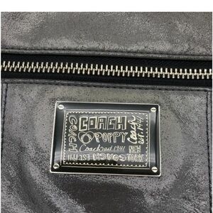 Coach Poppy "Hippie" metallic silver leather bag, very soft leather. It has a large interior, with a front zippered pocket and a zippered interior pocket. In excellent used condition. Please see photos for details and measurements.