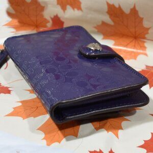 Coach Poppy Liquid Gloss Heart Snap Wallet – Purple Patent Embossed C