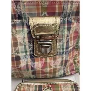Coach Poppy Madras Sequined Pink Canvas Crossbody With Matching Wallet 9x7” EUC