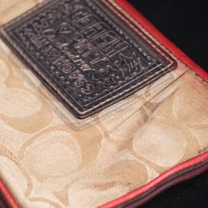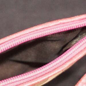 Coach Poppy Metallic Khaki and Pink Signature Canvas Wristlet Clutch