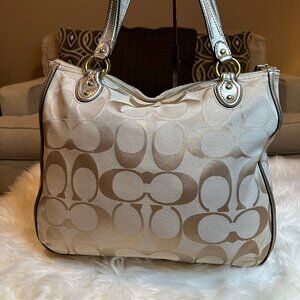 Coach Poppy Metallic Signature Tote Bag