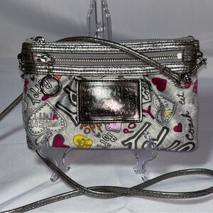 Coach Poppy Multicolor Graffiti Print Double Zipper Crossbody
