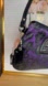This Coach Poppy wristlet showcases a bold purple and black shimmer animal pattern, offering a modern and eye-catching design. Crafted from durable fabric, it combines style with functionality, making it a perfect accessory for any occasion.