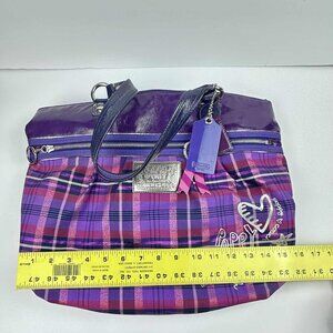 Coach Poppy Plaid Glam Tote Bag – Purple Multi Patent Leather Trim