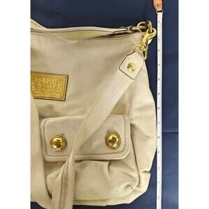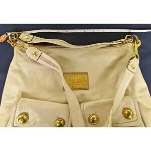 Coach Poppy shoulder bag, leather hobo, ivory handbag, Y2K Coach, zip top, pocket hobo 14681.